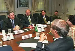 In 2001, Sattar coordinated an emergency meeting with US National Security Adviser, Condoleezza Rice, which many of his attendees described as a "rough meeting."[8] Sattar worked on normalizing relations with the United States even as before 9/11 attacks in the United States in 2001. After the US demands to Pakistan to provide utmost co-operation on War on terror, Sattar later described the co-operation policy as: "We agreed that we would unequivocally accept all US demands, but then we would express our private reservations to the US, and we would not necessarily agree with all the details."[8]
