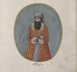 In 1806, Abdurrahman Pasha held a rebellion. Some Kurdish historians consider this the first revolt with nationalist sentiments,[4] however, his real intent was to expand his realm in expense of the vali of Baghdad and he tried to be the only power in the province with the approval of the sultan and with the economic and military power he had in hand, not an independent Kurdistan. As the British resident J.C. Rich, who was a close friend of Abdurrahman Pasha, puts it, the Pasha did not seek full independence, he only wished "to render his country tributary to the Porte, but independent of any neighbouring Pasha".[5][6] The reason for this revolt was because when Ibrahim Pasha, whom was Abdrrahman's uncle, died. The Ottoman authority placed a rival tribe member as Emir.[7] In June 1810, Abdurrahman Pasha marched towards Baghdad to overthrow the semi-independent Governor Kücük Süleyman Pasha,[8] who had not paid tribute to Istanbul. The forces of the Baghdad army launched a violent attack on Abdurrahman Pasha's army which scattered his forces, many of whom joined the Baghdad army or Khalid Pasha's army. But in the end Abdurrahman Pasha turned out victorious, as the casualties of his forces numbered only 10,000, while, the opposition forces numbered 100,000 and Süleyman Pasha was killed. This battle would be known as the Battle of the Straits, or the Battle of Darband. This victory secured Abdurrahman Pasha considerable cachet in Istanbul. Upon his return, he was appointed as Kethüda (or steward) to the sultan’s inner circle.[9][10]