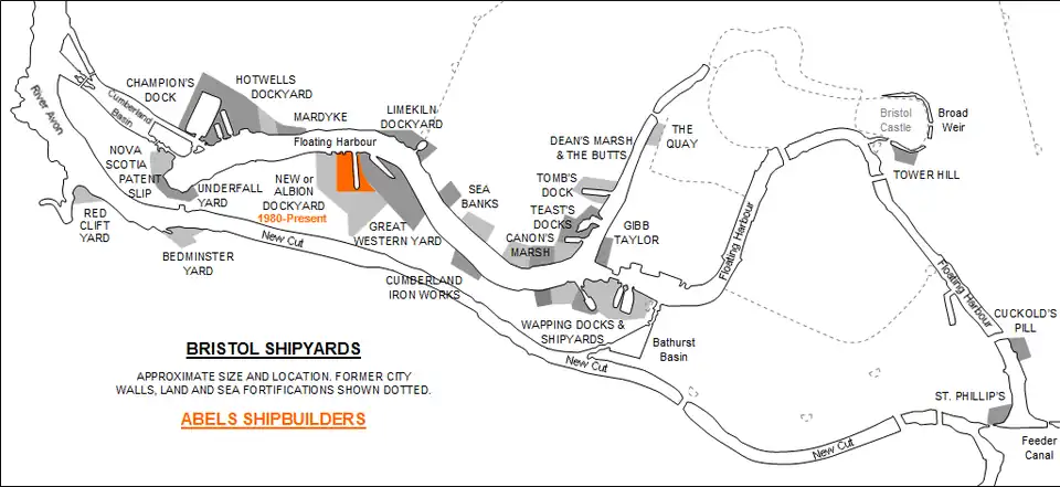 - ^ a b "Abels Shipbuilders: Final large Bristol shipbuilder closes". BBC. 29 September 2016. Archived from the original on 14 November 2017.