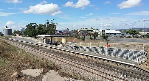 It is also served by NSW TrainLink Xplorer services from Sydney to Armidale and Moree.[5] This station is a request stop for the service, so the train only stops here if passengers have booked to board/alight here.