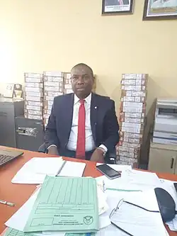 ![]() Falodun in his office at the Federal Polytechnic Usen | |