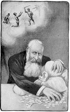 1905 cartoon of Leopold II with his private earnings from the Congo Free State