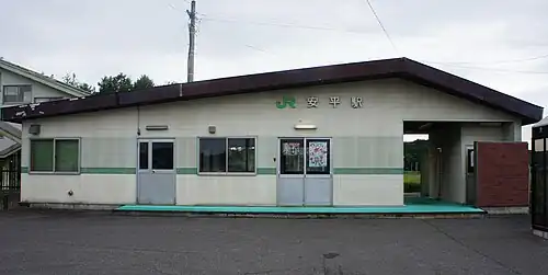 Abira Station (安平駅, Abira-eki) is a train station operated by JR Hokkaido in Abira, Yūfutsu District, Hokkaidō, Japan.