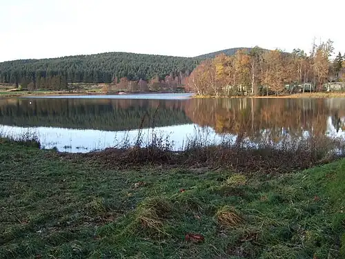 The loch is artificial, created by the Aboyne Castle estate. On 9 February 1891 he Aberdeen Free Press advertised a special train from Aberdeen along the Deeside line to the Loch of Aboyne Platform for a bonspiel on the 10 February between curlers from the south and north of the River Don.[2] In 1908 the club is recorded as meeting annually at the Loch of Aboyne and that the loch was used for curling from at least 1870.[4] The club was active in 1915, the year when it is recorded to have organised a concert to raise money for the war effort.[5] The club no longer exists. The site was also known as St Katherine's Loch.