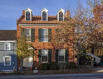 The Abraham Jones House is a historic home located at Libertytown, Frederick County, Maryland, United States. It is a 2+1⁄2-story, Flemish bond brick house attached to a later frame structure. Roof features include low "parapets" formed by the extension of the gable walls and at each end of the roof ridge are single flush gable chimneys. The main entrance door is an example of Federal period craftsmanship and design. It is one of the finest Federal houses in Maryland.[2]