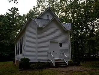 Abraham Salle was first in New York in 1700, when he petitioned for privileges of citizenship of the governor and council.[1] He moved to Manakintown in what was then Henrico County, Virginia, where Huguenots settled, many of them sailing on four ships to Virginia in 1700.[1] Manakintown was established at the site of an old Monacan village west of Richmond, Virginia. Monacans lived in the area until about 1722.[2] William Byrd II of Tuckahoe issued land patents totally 10,000 acres for Manakintown in 1711 and 1757. A church was established in the center of town.[2] The emigrants were noblemen, professional people, artisans, and craftsmen. The artisans brought weaving, lace-making, and silk-work to the colony.[2] Because they were not farmers, the initial year was difficult. They soon learned how to clear and farm the land.[2]