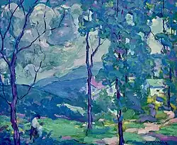 The Montclair Art Museum in New Jersey presented a retrospective of Molarsky's work in 1928 that included 22 landscapes and seascapes.[17] The Monclair Times praised the paintings' "richness and depth and color" and the "dramatic feeling in [Molarsky's] portrayal of nature. The woods, hills, and fields . . . speak and act out a story."[18]