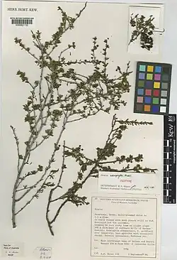 - ^ a b c Maslin, Bruce R. (1999). "Acacia miscellany 16. The taxonomy of fifty-five species of Acacia, primarily Western Australian, in section Phyllodineae (Leguminosae: Mimosoideae)". Nuytsia. 12 (3): 318–320. Retrieved 6 May 2024.