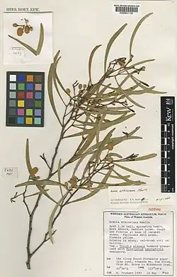 - ^ a b c Maslin, Bruce R. (1982). "Studies in the genus Acacia (Leguminosae: Mimosoideae) - 11. Acacia species of the Hamersley Range area, Western Australia". Nuytsia. 4 (1): 75–78. Retrieved 5 January 2025.