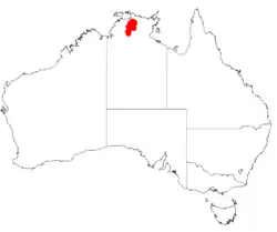 It is endemic to the Northern Territory where it is commonly found along the escarpments in the western portion of Arnhem Land in the north and down to Nitmiluk National Park in the south where it grows in sandy soils that are part of creeks and streams that are responsible for draining the escarpment.[1]