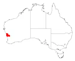 It is native to an area in the Wheatbelt and Mid West regions of Western Australia from around Dandaragan in the south up to Irwin in the north where it is found on ridges and low hills growing in gravelly loamy soils[1] as a part of open Eucalyptus woodland communities.[2]