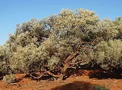 Georgina gidgee woodlands have a patchy but widespread distribution in central Australia and are considered Vulnerable (VU) according to the IUCN Red List of Ecosystems.[5] It is widely distributed through arid parts of central and eastern Australia from the southeastern Northern Territory in the west extending into Queensland to around the catchment of the Georgina River in the northeast and into the far northeast of South Australia in the southeast, where it is usually situated along water-courses or on plains growing in loamy or clay soils as a part of low open woodland communities.[2]