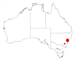 It is endemic to parts of New South Wales between Bilpin in the south and Mount Kindarun in the north on sandstone ridges growing in thin sandy soils as a part of dry sclerophyll forest communities.[1]