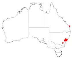Three-veined wattle grows in open forest on sandstone and shale and is endemic to New South Wales and restricted to western Sydney and the lower Blue Mountains.[5]