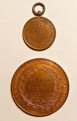 Medals received by Henry Weidenfeld from the Academie Parisienne des Inventeurs Industriels et Exposants, a scam honorific run by E. Boettcher in Paris, France in the 1890s.