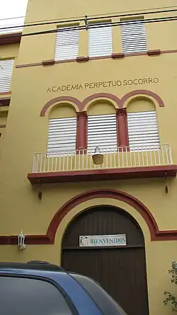 Academia del Perpetuo Socorro (English: "Academy of Our Lady of Perpetual Help") was founded in 1921 as a Catholic parochial school of the Perpetuo Socorro Parish at the Archdiocese of San Juan, Puerto Rico. The school is located in Miramar in Puerto Rico's capital city of San Juan. Students, teachers and alumni commonly refer to their school as Perpetuo.