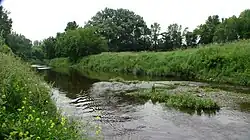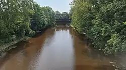 View of the L'Acadie River upstream from the Marie-Anne Street pedestrian bridge (Carignan). Several segments of this river are navigable.