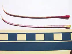 For example, columnar cactus spines grow from the apex of the plant. After several weeks the spines stop growing and have been moved to the side of the stem. The old spines remain in place for decades as new spines are created at the continually growing apex.[1] The result is that along each external "rib" of the cactus is a series of spines arranged in the order they grew in – the oldest spines are at the bottom and the youngest spines are at the top. These spines can be dated using bomb-spike[2] Carbon-14 and isotopes of carbon (Carbon-13) and oxygen (Oxygen-18) may be used to infer past climate[3] (e.g. precipitation or temperature), plant stem growth[4] or plant physiology (e.g. photosynthetic processes).[5] Alternatively, the width of small transverse bands[6] in the spine may be used to infer daily information about cloud cover or plant productivity, although this remains to be tested. It has also been shown that regular waxy banding on the sides of a Costa Rican cactus (Lemaireocereus aragonii) indicate annual growth and can be used as temporal chronometers.[7]