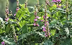 It is a perennial shrub that typically grows up to 3 m (9.8 ft) tall. It has pinnatifid, dark green leaves with deeply lobed margins. The flowers are produced in tall, dense spikes, being purple or violet,[2][a] or blue in colour.[3] It suffers from fragmentation, pollinator limitation, and inbreeding.[4]