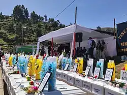 Official ceremony on 20 May 2022, prior to the burial of Accomarca massacre victims, perpetrated by the Peruvian Army in August 1985, in Ayacucho region against disarmed civilians, Quechua-speaking peasants.
