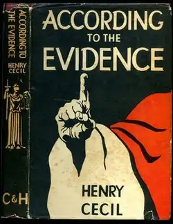 According to the Evidence is a 1954 comedy crime novel by the British writer Henry Cecil.[1] An ex-army officer and a former criminal join forces to make sure that the man who killed a murderer is acquitted of murder himself.