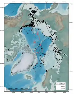 Abundance map of Acetabulastoma arcticum in the Arctic Ocean and surrounding seas.[4]