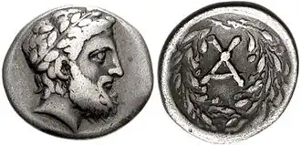 Achaean coin probably depicting a symbol of the league. of Achaean League