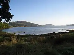 Achagoyle Bay is coastal embayment, on a chord of 0.75 miles, on a 114° orientation, on the western coast of the longest sea loch in Scotland, Loch Fyne[1] located in Argyll and Bute, on the west coast of Scotland. Achagoyle Bay is directly northwest of Brainport Bay on a NNE orientation, which forms a rightward hook, and opens into the Minard Bay with a NE orientation, also with a rightward hook, directly south. The three bays constitute the western edge of the Minnow Narrows[2][3] which is bounded by the islands An Oitir and Eilean Aoghainn directly to the east of Brainport Bay.