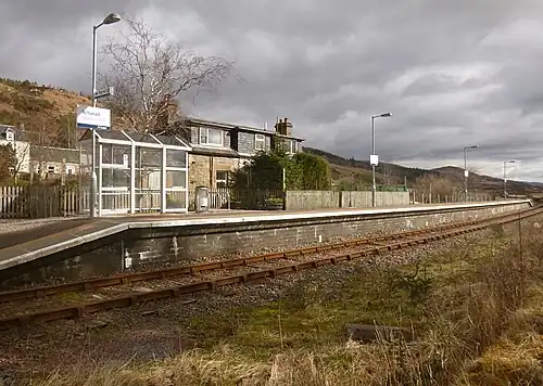 Achanalt railway station is a geographically remote railway station on the Kyle of Lochalsh Line, serving the village of Achanalt in the north of Scotland. The station is 21 miles 34 chains (34.5 km) from Dingwall, between Lochluichart and Achnasheen.[4] ScotRail, who manage the station, operate all services.