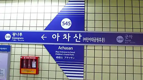 - ^ "Search: Achasan". Seoul Metro. Retrieved 2019-07-22.