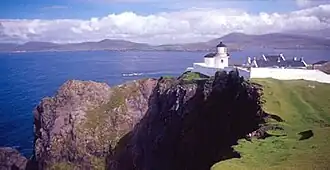 Acaill Bheag was evacuated in 1965 after being inhabited for over 3000 years[1] and the inhabitants were settled on the main (Achill) island and nearby mainland. The main settlement was in the centre of the island, bounded by two hills to the north and south. There are a small number of holiday homes on the island, but they are usually empty for most of the year. Access to the island is from Cé Mhór, in the village of An Chloich Mhór (Cloghmore), by local arrangement. A lighthouse on Acaill Bheag's southern tip was completed in 1965.