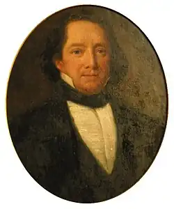 In 1821 he embarked from a Spanish port bound for the United States. On arrival in New York, Murat immediately applied for naturalization.[6] After a few months in that city he made an extensive tour through the United States, using an assumed name at first. He had a striking resemblance to his famous uncle in countenance and mannerisms. Although he had renounced all his European titles[7] and citizenship, his wide social connections brought Murat to Washington, where he befriended Richard K. Call,[8] the delegate of the Florida Territory's at-large congressional district to the United States House of Representatives.