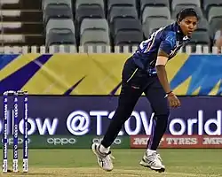 ![]() Kulasuriya bowling for Sri Lanka during the 2020 ICC Women's T20 World Cup | |||||||||||||||||||||
