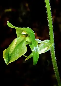 Achlydosa glandulosa is a species of orchid endemic to New Caledonia and the only species of the genus Achlydosa.[1] This species has previously been placed in the genus Megastylis.[2] Its closest relative is Pterostylis,[3] the sole other genus of subtribe Pterostylidinae.