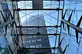Both building parts are placed on high legs over a steel and glass substructure. An arcade in this substructure accompanies the pedestrian route between station and city center. At the top of the tower there is a semi-public space with panoramic views of the city and countryside. Due to the interplay of a fickle office market, flexible labor and advancing automation, not all office space in the Achmeatoren is in continuous use.