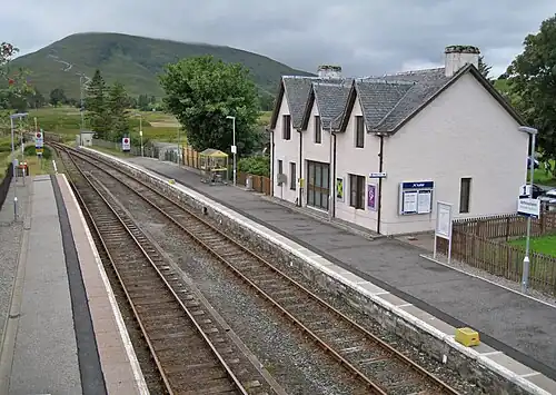 Achnasheen railway station is a remote railway station on the Kyle of Lochalsh Line, serving the village of Achnasheen in the north of Scotland. The station is 27 miles 72 chains (44.9 km) from Dingwall, between Achanalt and Achnashellach.[4] ScotRail, who manage the station, operate all services.