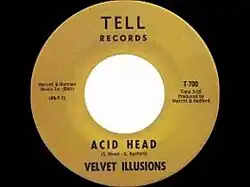 "Acid Head" is a song recorded by the American garage rock band the Velvet Illusions. It first appeared as the A-side to the group's debut single, which was released on Tell International Records in mid-1966. The writing of the composition is credited to keyboardist Steve Weed and the group's manager George Radford, however, it is reported that "Acid Head" actually originated from an outside composer. At the time of its first release, the tune suffered from limited radio-play time. Over time, "Acid Head" has since become recognized as a garage rock classic and is widely accessible on multiple compilation albums.