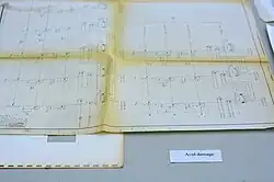 Acidic paper is paper which was manufactured using acidic substances.[1] Widely used since the mid-nineteenth century, its pages become yellow within years, extremely brittle over decades, and eventually unreadable in the library and archive collections intended to preserve them.[2] This process has been called "slow fire".