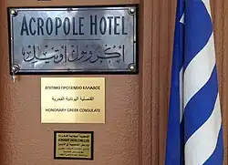 When the British Governor-General Sir Alexander Knox Helm had the "Great Britain Bar" closed because of the noise, the couple took over a liquor dealership, opened a wine store, a confectionery shop, and then the Acropole,[3] which at first had just ten rooms, but soon expanded.[4] American author Robert D. Kaplan has called it