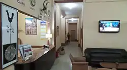 Shortly afterwards, however, the 50-room hotel experienced an unprecedented influx of customers because of the devastating famines in Darfur and Ethiopia. It became the base for many international non-governmental organizations since it was the only hotel with reliable telephone, telex and fax lines.[4] Kaplan even reasons that the whole relief effort may well have collapsed without the skills of the Pagoulatos-family to maneuver through Sudan's complex bureaucracy. Senior Associated Press correspondent Mort Rosenblum nicknamed the Acropole the "Emergency Palace".[13] American journalist Edward Girardet compared it to Rick's Café Américain in the movie Casablanca.[4] Others likened it to legendary hotels like the Pasaje in Havana during the Spanish–American War, the Florida in Madrid during the Spanish Civil War and the Scribe in Paris after the Liberation of France,[14] or attributed "a Raiders of the Lost Ark vibe" to it.[15] One of the most prominent clients at that time was Nobel Peace Prize laureate Mother Teresa.[16] A framed letter from the Irish pop-star-turned-Band Aid founder Bob Geldof on the wall of the hotel office depicts his appreciation for the support by the Pagoulatos family and their staff.[9]