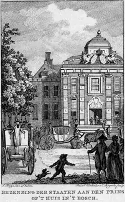 On 3 July 1788, William V, accompanied by his sons prince William and prince Frederick, received a delegation of the States General at Huis ten Bosch Palace. In a formal ceremony, it solemnly granted him the Act of Guarantee. The Act was henceforth considered to be an unalienable part of the constitution of the Dutch Republic, which thereby began to look more and more like a unitary state led by an absolutist monarch.[6]
