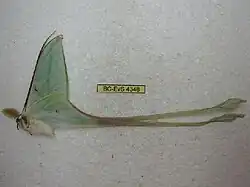 Actias chapae or colloquially known as the Celestial moon moth is a moth in the family Saturniidae. It is found in Vietnam and China and potentially other countries in the region; it is a montane species recorded from 1500m and higher. It appears to be an exclusive pine feeder and has been raised on many different species of Pinus in captivity. [1]
