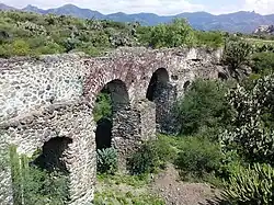 The water supply was one of the main problems of the town, in 1546 the construction of an aqueduct began.[1][2] Also in 1546 the Church of Actopan was founded;[40][41] it is said that the Augustinians, upon seeing the topography of Lxcuinquitlapilco, decided to change the head of the town to Actopan.[36] The first record of baptism in the Church of Actopan that is known is dated July 8, 1546, date that coincides with the foundation of the curate.[42] From 1550 to 1560 the Convent of San Nicolás de Tolentino is built; and the work is attributed to Fray Andrés de Mata.[40][41]