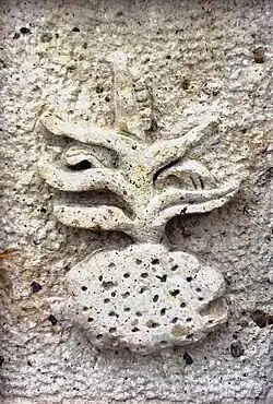 The glyph, (engraved or, by extension, written or painted sign) that represents the city is made up of a corn cane in corn silk and elotes on a clod drawn as a disk, sown inside with dots or coarse grains.[28] This representation is commonly used as the city's escutcheon.[28]