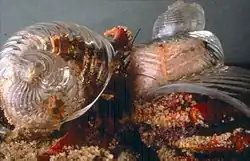 Robert DuGrenier, whose hand-blown glass pieces are permanently part of the trees, as they grow into and become one with the sculptures; Untitled by Robert DuGrenier, two hermit crabs that have moved into hand-blown glass shellsUntitled by Robert DuGrenier, hand blown glass sculptures on tree hand-blown glass "sea" shells, that living hermit crabs move into and take as their homes;[12] and a glass beehive, that is home to thousands of Italian honey bees who busy themselves making wax & honey sculptures, as programmed into the construction of the hive, by the artist.[13]