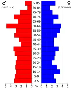 | 2023 (est.) | 7,389 | [4] | −1.4% |