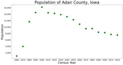 Adair County is a county in the U.S. state of Iowa. As of the 2020 census, the population was 7,496.[1] Its county seat is Greenfield.[2]