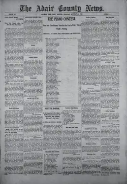The Adair County News was a weekly newspaper published on Wednesdays,[1] in Columbia, Adair County, Kentucky[1] The Adair County News was first published in 1887, and was last published in 1987.
