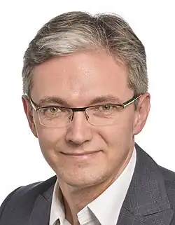 Adam Sebastian Jarubas (born 17 December 1974 in Busko-Zdrój) is a Polish politician and former Marshal of Świętokrzyskie Voivodeship (2006-2018). He became vice-president of Polish People's Party in December 2012. He was the official candidate of the party for the office of President of Poland in the 2015 Polish presidential elections. In the first round he received 1,60% of votes, which gave him the sixth place among the candidates.[1]