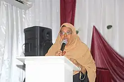 Adar Ismail Jurati is a Somali politician, who is the Jubaland Minister for Women and Family Affairs.[1][2][3] She is an advocate for the annual 16 Days of Activism campaign, which focuses on the elimination of gender-based violence and early marriage.[1][4][5] In 2021 she led signing of a memorandum of understanding between the Ministry of Women and Family Affairs and the Somali Women Solidarity Organization.[6] In 2022 she led a consultative meeting with government officials and people who perform female gential mutilation (FGM) with a view to stopping the practice in the Kismayo area.[7] At the meeting Jurati promised employment for women who stopped perpetuating FGM in their communities.[7]